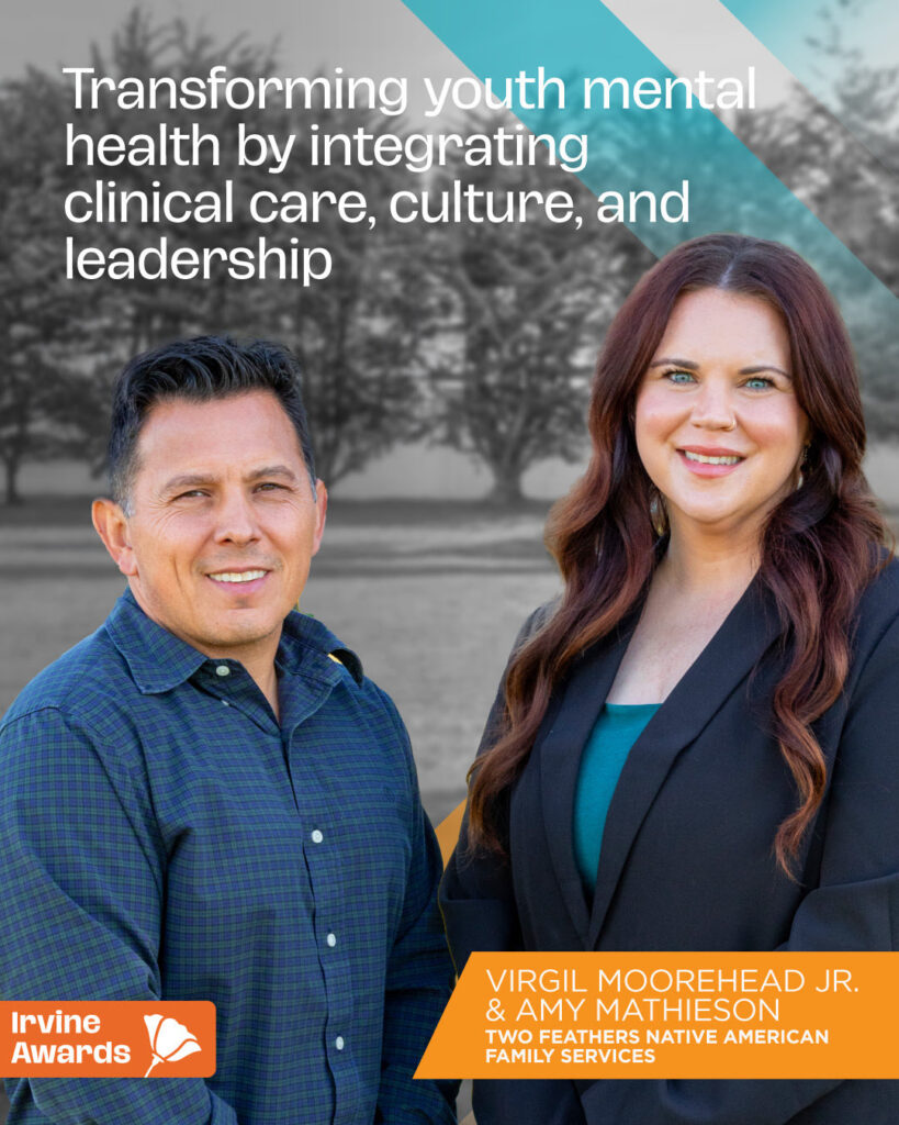 We’re thrilled to share that Virgil Moorehead Jr. and Amy Mathieson of Two Feathers Native American Family Services have been honored with a 2026 Leadership Award from The James Irvine Foundation!