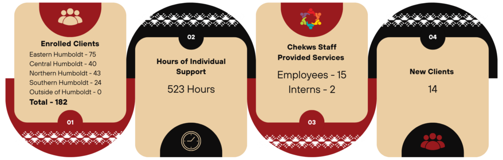 February was a busy and impactful month for our counseling team at Two Feathers! Our clinicians and interns provided 523 hours of individual support across 182 clients throughout Humboldt County 75 from Eastern Humboldt to Northern and Southern Humboldt. With 15 dedicated staff and 2 amazing interns, we also welcomed 14 new clients into our circle of care. Every hour spent represents a moment of connection, healing, and growth for our Tribal youth and families.