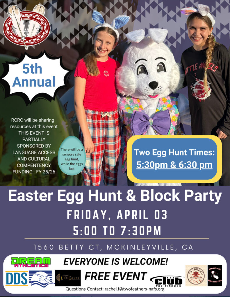 Spring is just around the corner, and we’re excited to remind our community about the upcoming 5th Annual Easter Egg Hunt & Block Party, taking place Friday, April 3 from 5:00–7:00 PM at Two Feathers NAFS in McKinleyville.