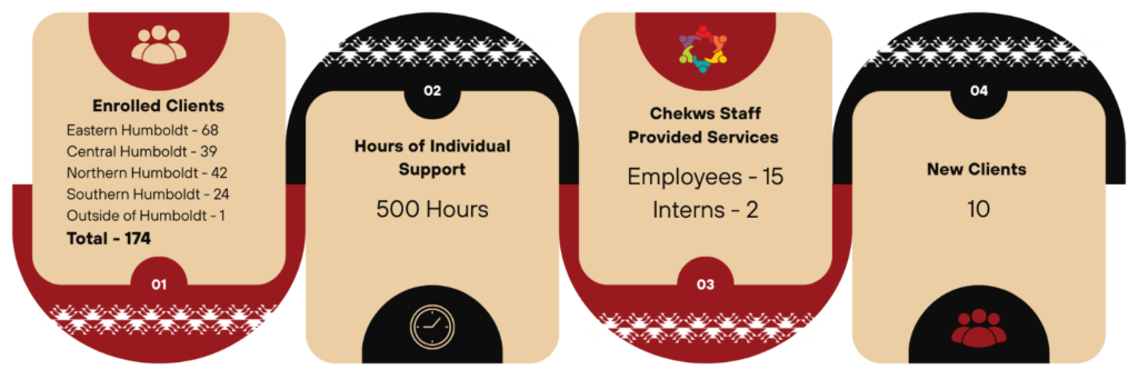 January was a busy and impactful month for our counseling team at Two Feathers! Our clinicians and interns provided over 500 hours of individual support across 174 clients throughout Humboldt County — from Eastern Humboldt to Northern and Southern Humboldt. With 15 dedicated staff and 2 amazing interns, we also welcomed 10 new clients into our circle of care. Every hour spent represents a moment of connection, healing, and growth for our Tribal youth and families.